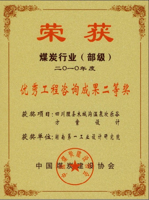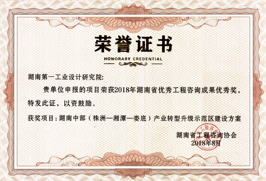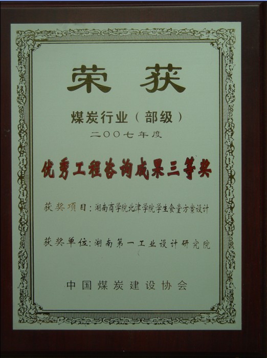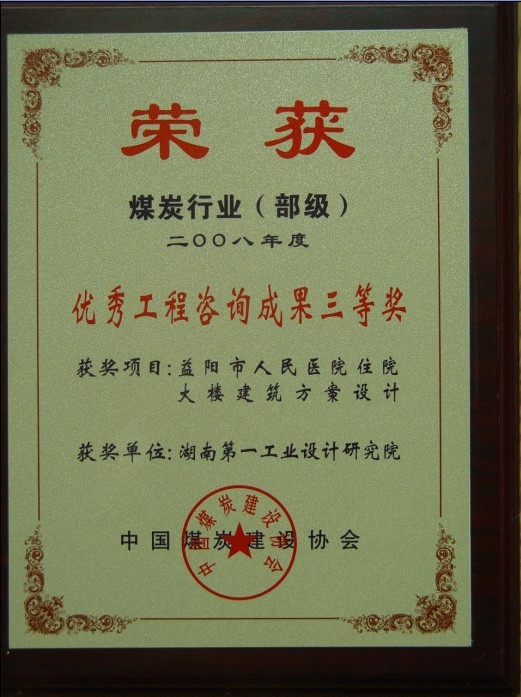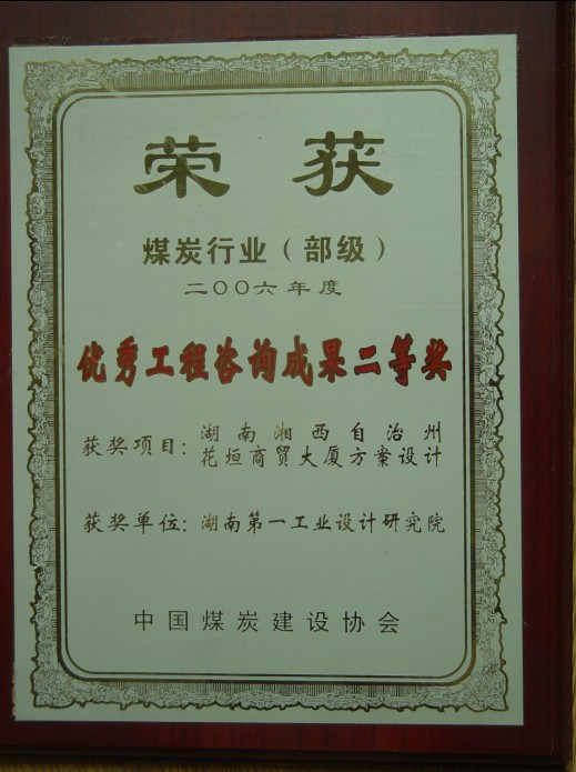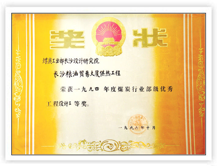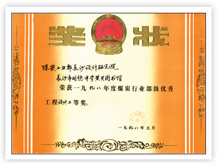湖南省優(yōu)秀設(shè)計(jì)表揚(yáng)金獎(1984)