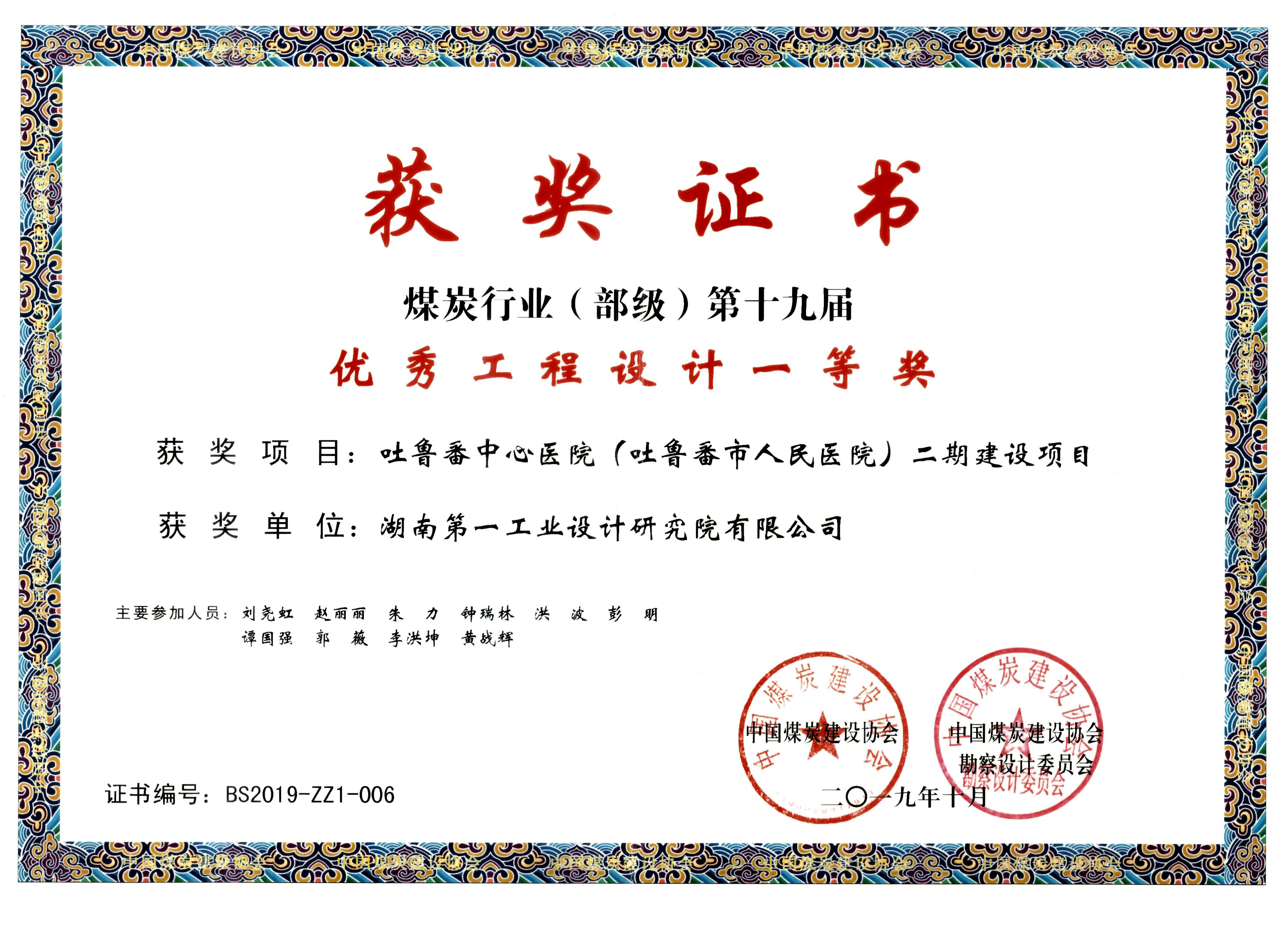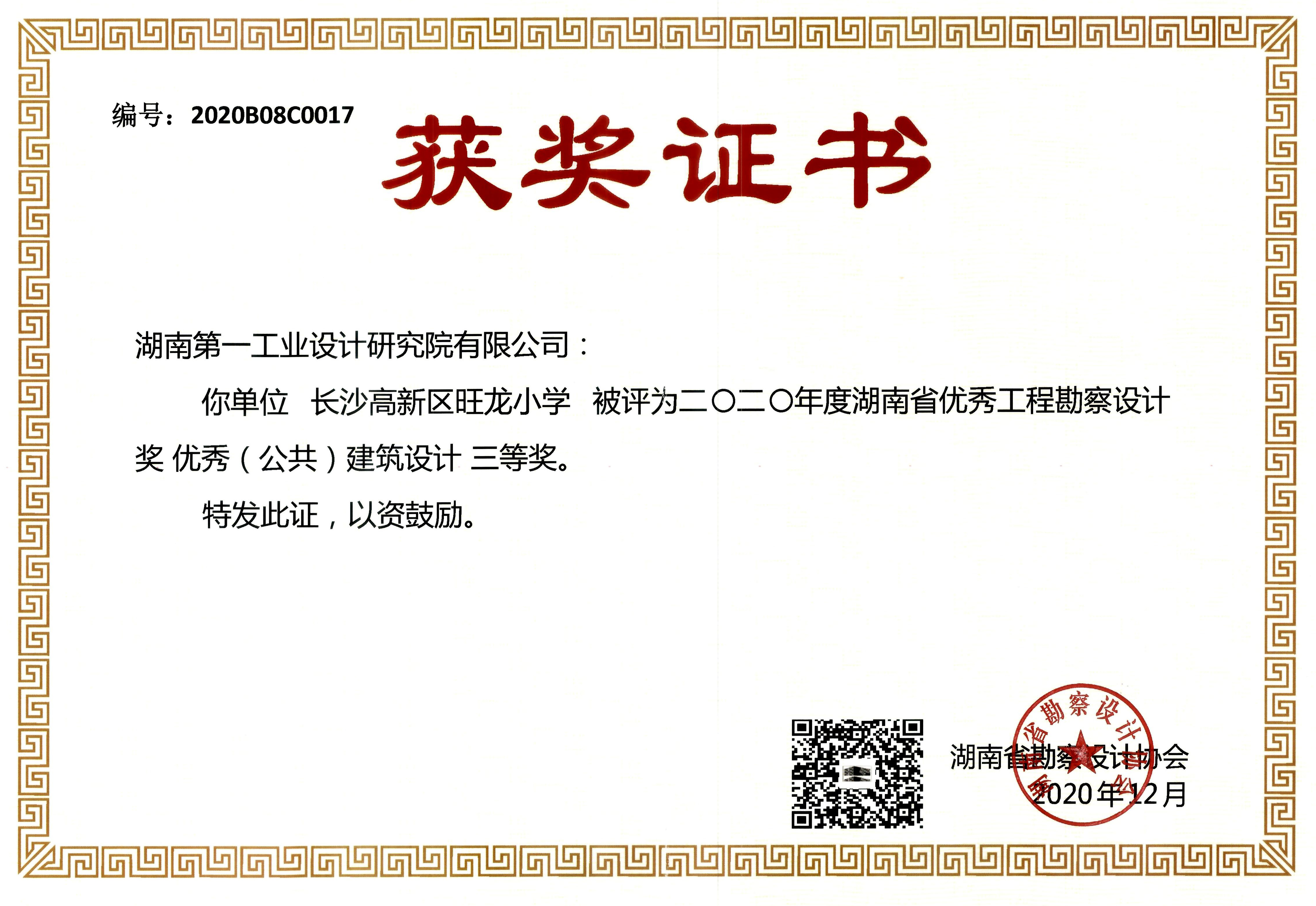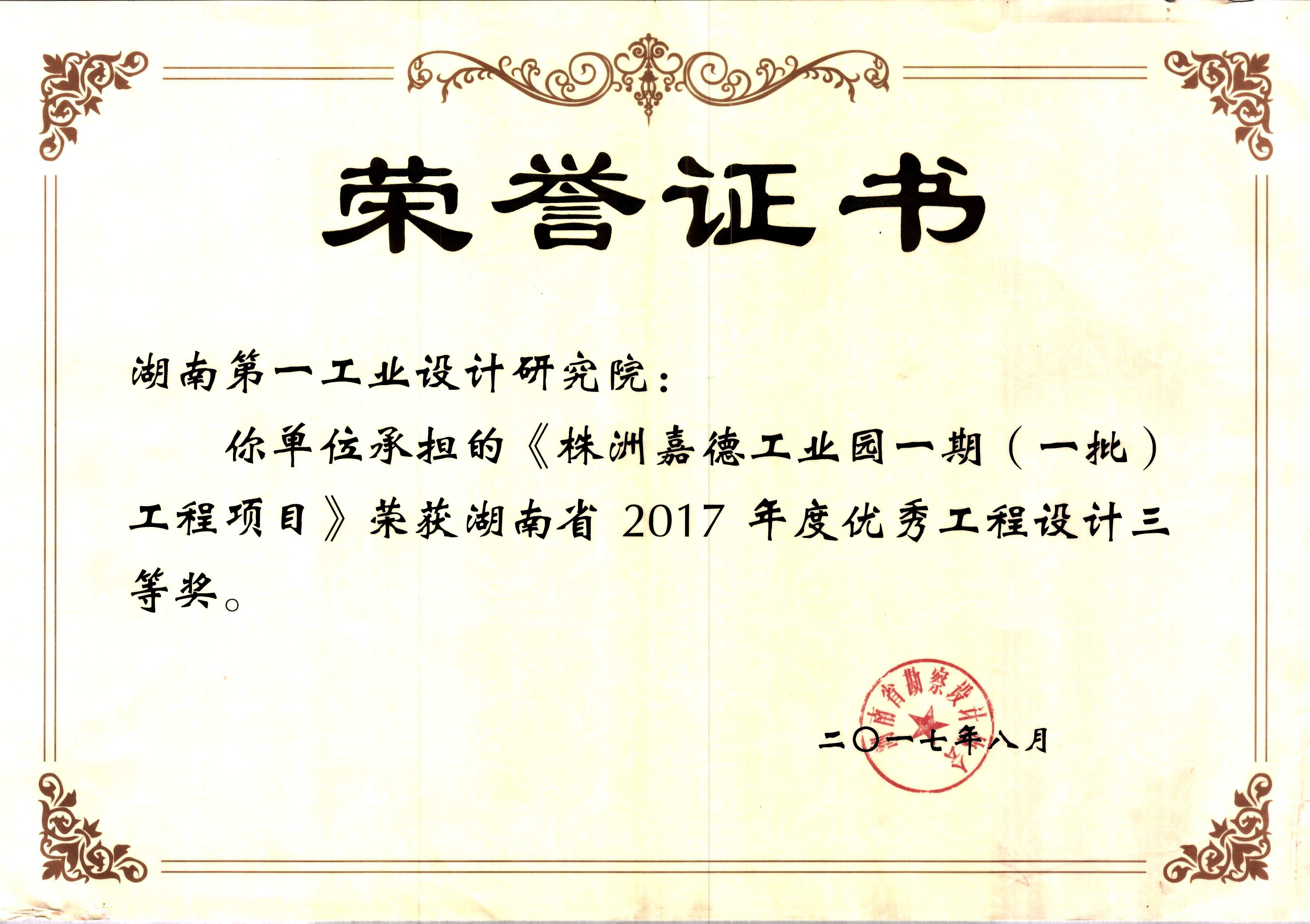 湖南省優(yōu)秀設(shè)計(jì)表揚(yáng)金獎(1984)